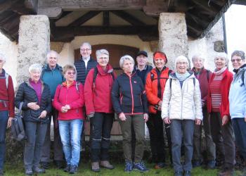 Mit der warmen Wintersonne im Rücken starten Mitglieder der DAV OG Traunreut nach Kaltenbach bei Aiging. Von Oderberg gehen wir gemütlich auf der ruhigen Nebenstrasse erst Richtung Arleting. Anschließend zweigen wir auf den Waldweg oberhalb der Traun ab und folgen diesem bis nach Kaltenbach. Wir besuchen die kleine Antoniuskapelle am Waldesrand und der Besitzer erzählt uns die Geschichte des Gotteshauses. Bevor wir uns wieder auf den weiteren Weg machen statten wir dem Hofladen der Destillerie Schnitzer noch einen Besuch ab und marschieren „Geistig“ gestärkt über Walchenberg und Niedling nach Oderberg zurück. Gemeinsam hoffen die Teilnehmer, dass auch 2022 viele Bergwanderungen gemacht werden können und verabschieden sich nach einer 11 Kilometer langen Silvestertour mit vielen guten Wünschen im neuen Jahr.