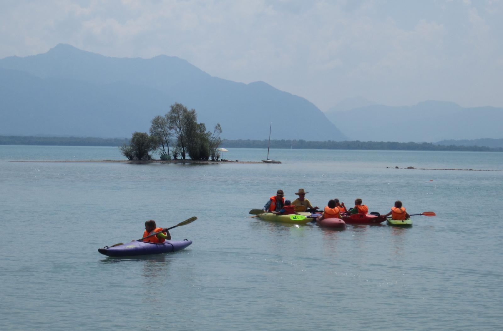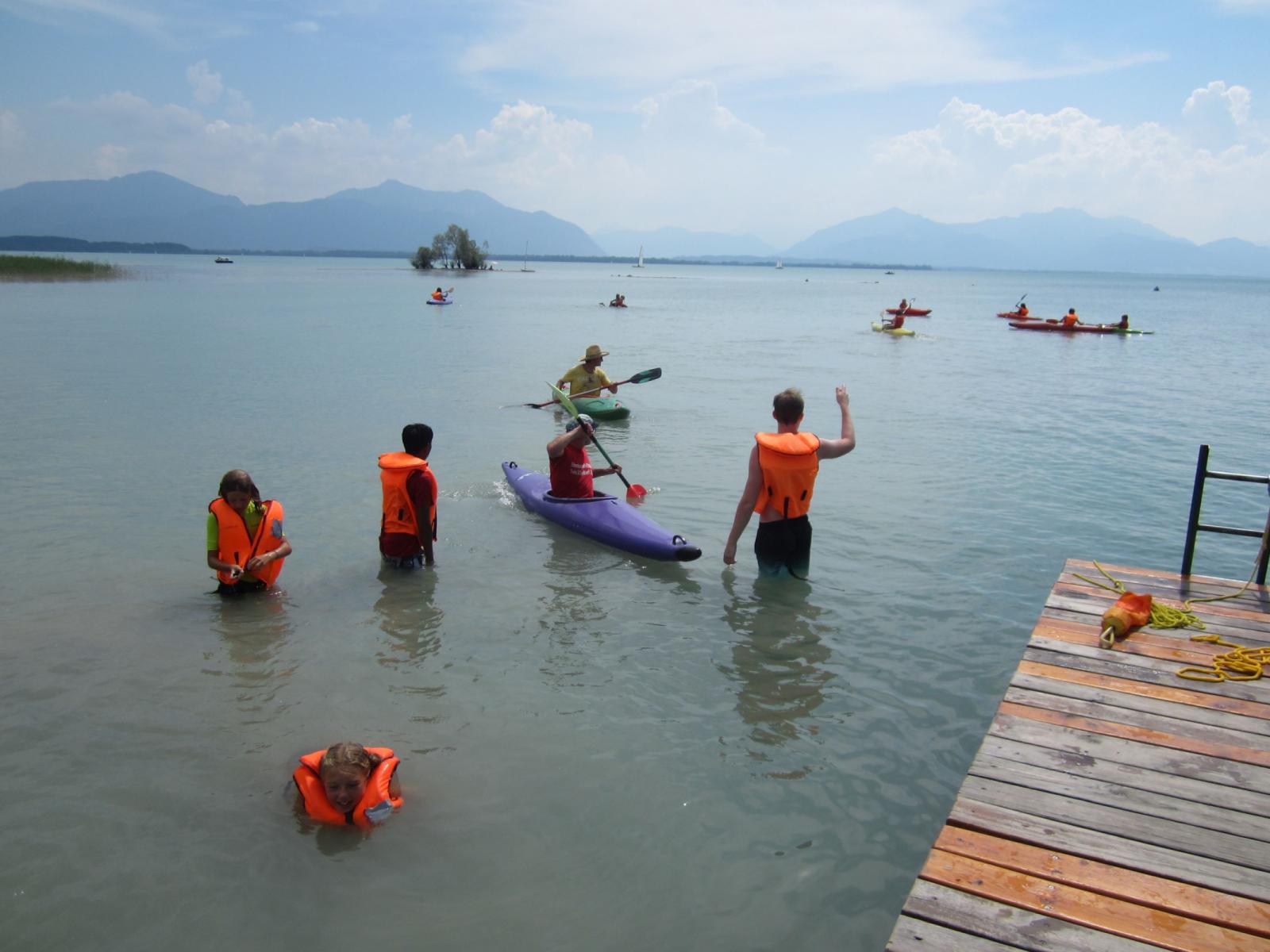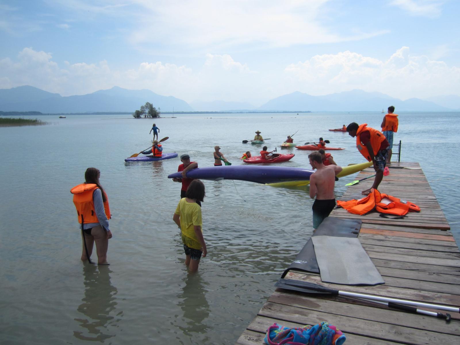 Wir starteten am Montag, den 31.7 gegen 14:00, unser Sommerlager. Es waren 12 Kinder, mit 2-3 Jugendleiter dabei, die in einem der beiden Häuser auf dem Zeltplatz in Schützing untergebracht waren. Die Woche bestand aus einer Schnitzeljagd, die mit den Kindern zusammen organisiert wurde, der klassischen Radeltour um den Chiemsee mit Erfrischung am Eisberg in Gstadt, viel Kanu fahren und einem ganzen Tag mit Kajaks.